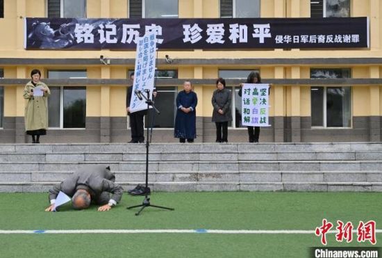 9月14日,吉林公主嶺,76歲侵華日軍后裔黑井秋夫跪地謝罪!埇 攝