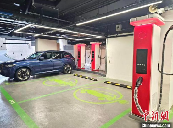 圖為華為在香港將軍澳藍(lán)塘匯商場停車場內(nèi)設(shè)置的充電站。 香港華為國際有限公司供圖