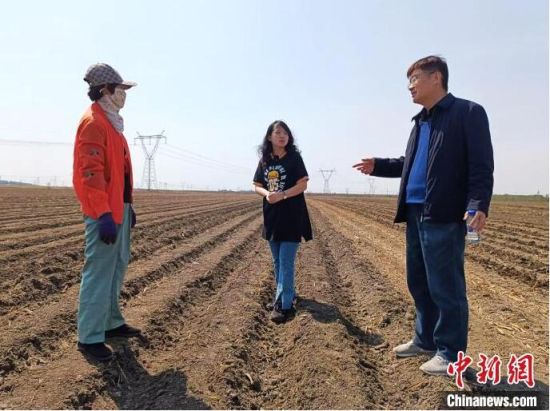 吉林省氣象服務(wù)中心工作人員在田間指導(dǎo)農(nóng)民春耕!≠Z春鶴 攝