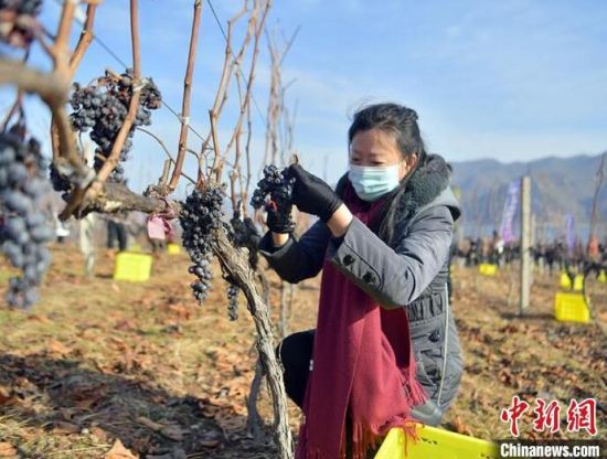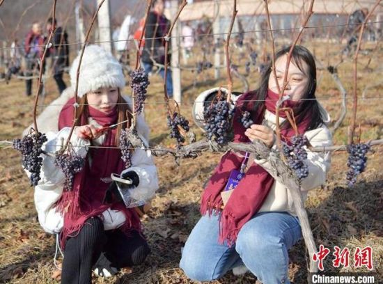 12月9日,吉林集安鴨綠江河谷,游客采摘冰葡萄。集安市所在的鴨綠江河谷與法國著名葡萄酒產(chǎn)地羅納河谷處于同一緯度,同屬世界葡萄酒黃金生產(chǎn)帶,當(dāng)?shù)厮a(chǎn)的冰葡萄是釀制冰酒的主要原料。目前,鴨綠江河谷冰葡萄已經(jīng)進(jìn)入最佳采摘時(shí)期。(完)