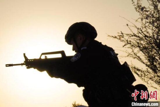 民警在夕陽下開展戰(zhàn)術(shù)訓練。鄭博文 攝