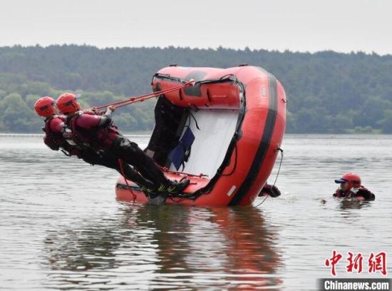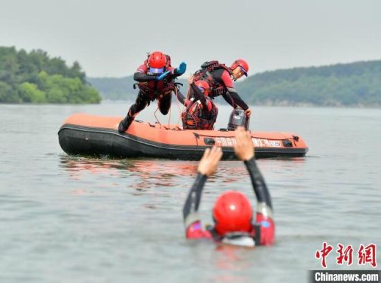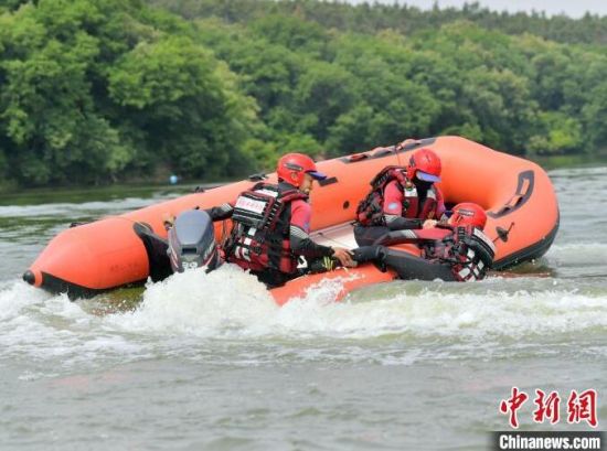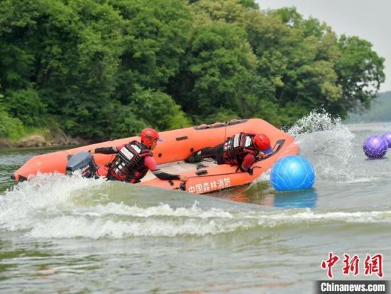 6月21日,吉林長春,消防救援人員正在進行水域救援翻舟自救科目訓練。目前,吉林省已進入汛期,吉林省森林消防總隊特勤大隊緊貼實戰(zhàn)水域救援任務,開展水域救援訓練。消防救援人員重點對橡皮艇操控、操舟繞標、翻船自救、O型救援等內(nèi)容開展訓練,全面做好防汛搶險等綜合性救援任務準備。(劉棟/攝)