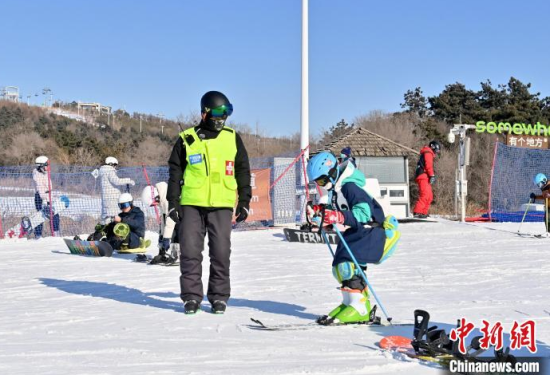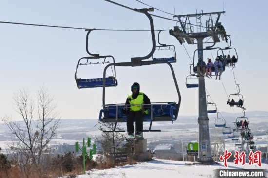 1月15日,在位于長春的天定山滑雪場,何海東在檢查雪道護網(wǎng)。何海東是一名滑雪巡救員,雪季期間,雪友數(shù)量激增,何海東的工作也變得異常繁忙。他要在零下二十?dāng)z氏度的天氣中日行三萬步,全面巡查雪道環(huán)境,排查安全隱患,如有意外他將第一時間對傷者實施救助。中新社記者 張瑤 攝
