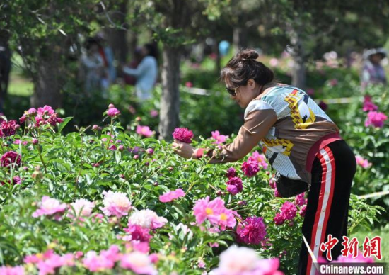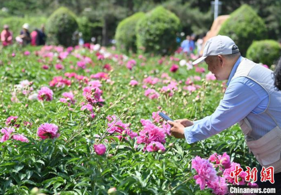 6月11日,在長春市長春公園內(nèi),六萬余株芍藥花競(jìng)相綻放,吸引了眾多游客前來觀賞。中新社記者 張瑤 攝
