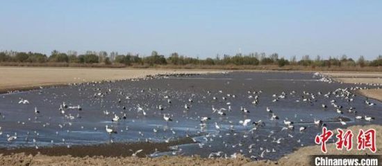 幾千只水鳥飛抵吉林市。(無(wú)人機(jī)圖片) 記者 蒼雁 攝