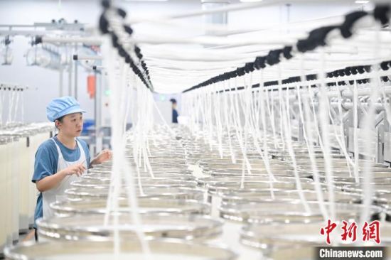 12月5日,吉林省吉林市,工作人員在吉林化纖生產線上巡查。(資料圖) 中新社記者 田雨昊 攝