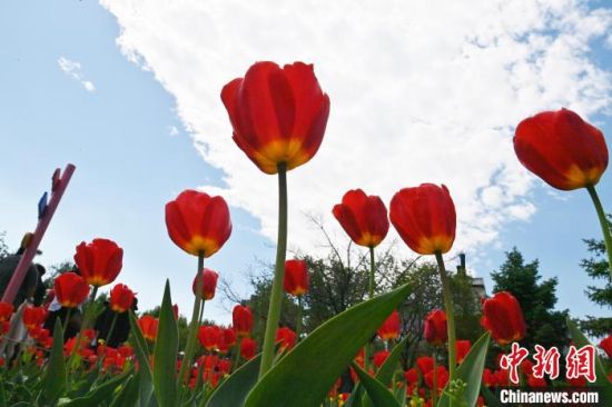 5月15日,在長春市長春公園內,近十萬株郁金香競相綻放,吸引了眾多游客前來觀賞。(資料圖) 張瑤 攝